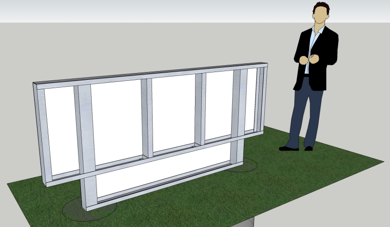 A friend of mine has a graphic/sign business (Hunt Signs). I made this model for him to use as a design presentation to his clients. It is an 8' wide welded aluminum frame set in concrete footers.