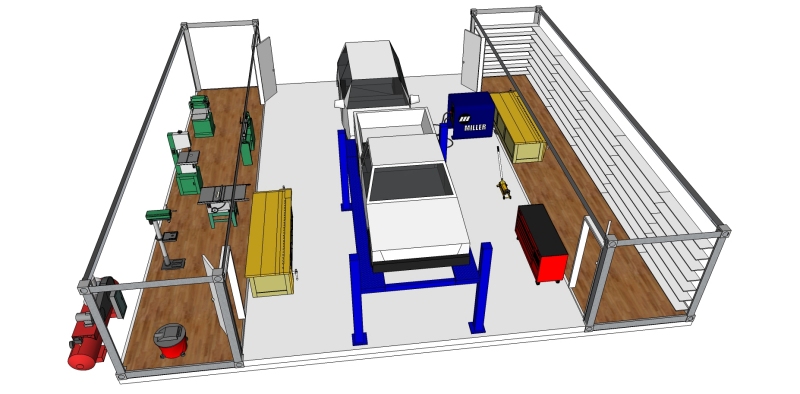 In did not make the models of the shop equipment. Those came from the Google Warehouse. The cars are the simple built-in ones from SketchUp. As I said, this was just a quick one-evening concept exercise.